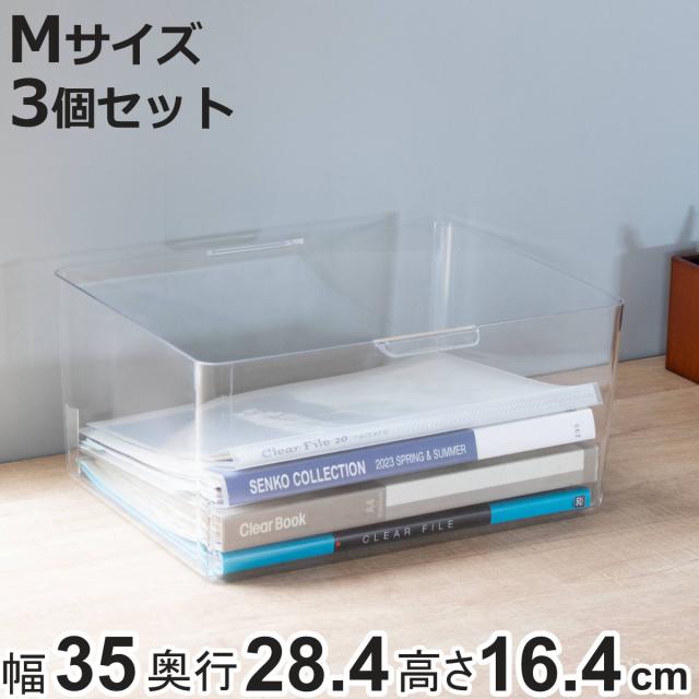 収納ボックス スケルトンボックス M クリア 3個セット 幅35×奥行28.4×高さ16.4cm ( 収納ケース 収納 小物収納 小物入れ プラスチック 透明 見せる収納 キッチン リビング クローゼット収納 ケース ボックス スタッキング )