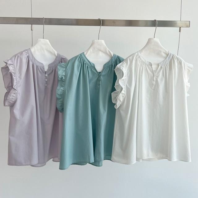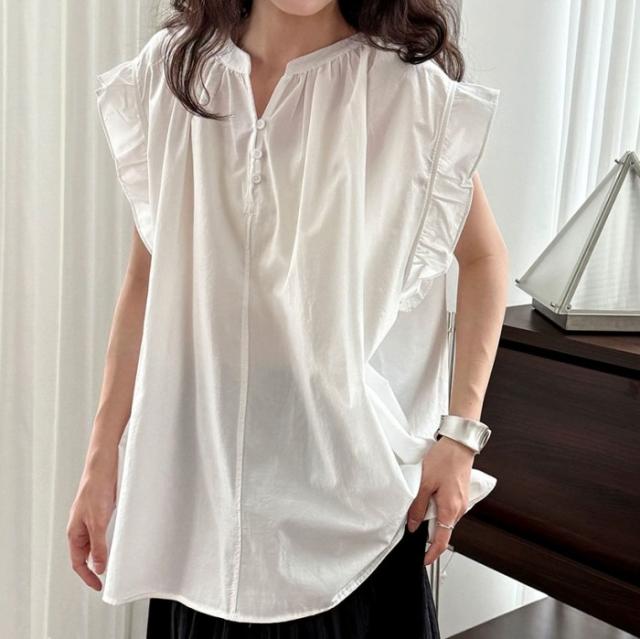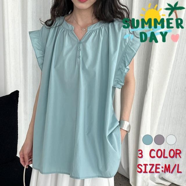 チュニック レディース ブラウス トップス ノースリーブ シャツブラウス プルオーバー 無地 ショート丈 夏新作