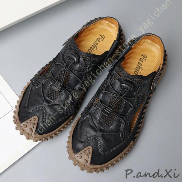 ビーチサンダル 革サンダル メンズ メッシュ サボサンダル 黒 無地 ストラップ 2way 夏靴 カジュアルシューズ 滑り止め スポーツ 通気性 つま先保護