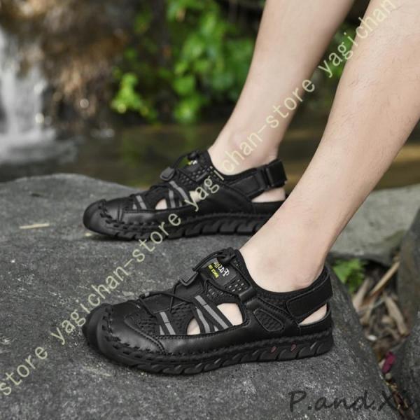 スポーツ サンダル メンズ 本革 スポーツサンダル アウトドア 耐衝撃 衝撃吸収 滑りにくい 厚底 アウトドアサンダル おしゃれ 黒 スニーカー スポーツ
