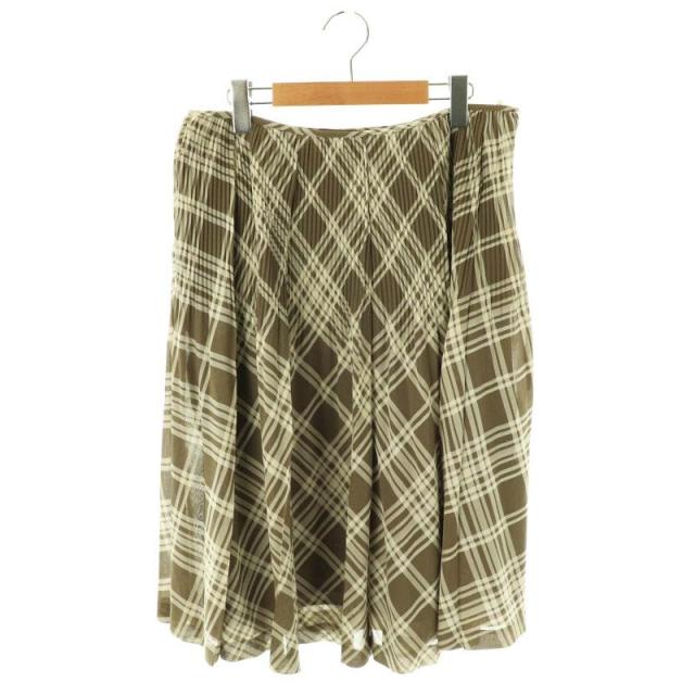 【中古】クミキョク 組曲 KUMIKYOKU フレアスカート プリーツ チェック柄 6 ブラウン オフホワイト レディース