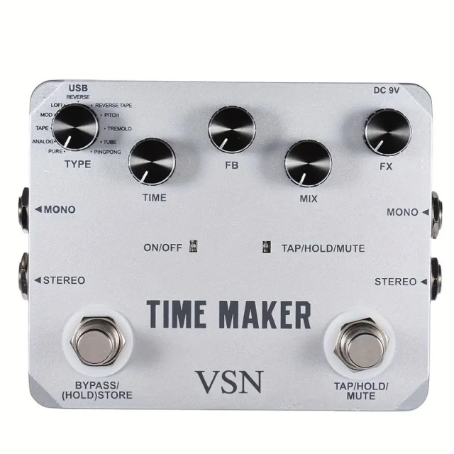 VSN Guitar Delay Pedal Time Makerを使用して、11種類のベースギター用ディレイペダルを提供し、タップテンポとトゥルーバイパス機能を備えたさまざまなディレイ効果を探索してみてください。