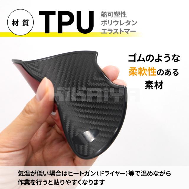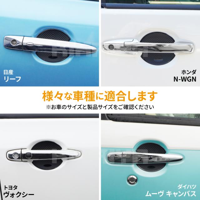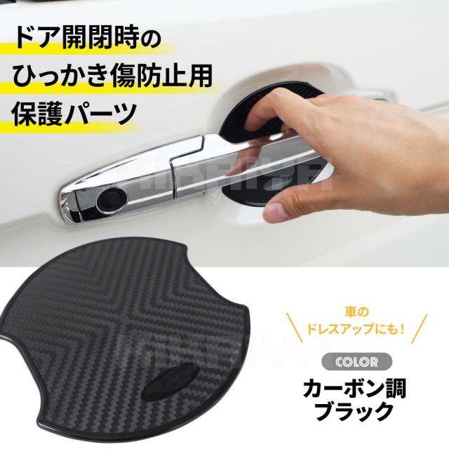 ドアハンドル プロテクター 4枚組 10×10cm ブラック カーボン調 貼付タイプ 傷隠し 傷防止 保護 汎用 TPU 外装パーツ カーアクセサリー KIKAIYA