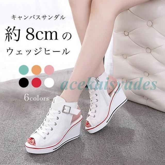サンダル ウェッジサンダル キャンバスサンダル ウェッジソール 約8CM 厚底 シューズ 靴 通気性 蒸れにくい 屈曲性 滑り止め 安定感 歩きやすい 美脚 スタイルアップ オシャレ 可愛い 春夏