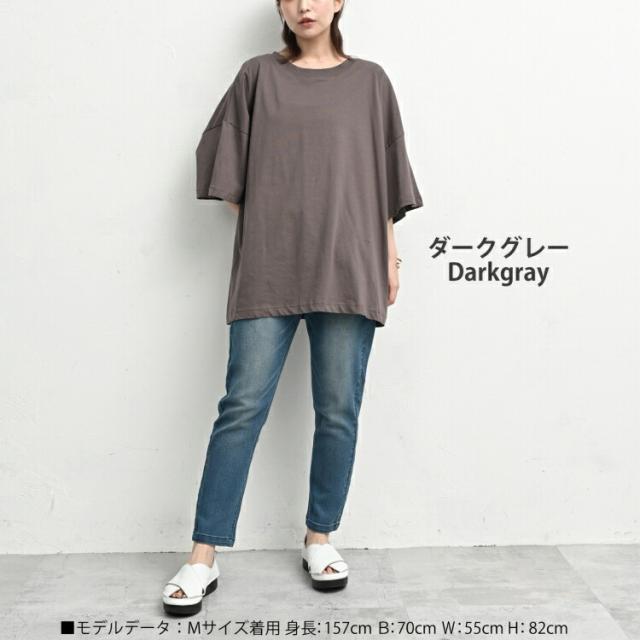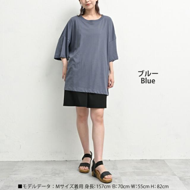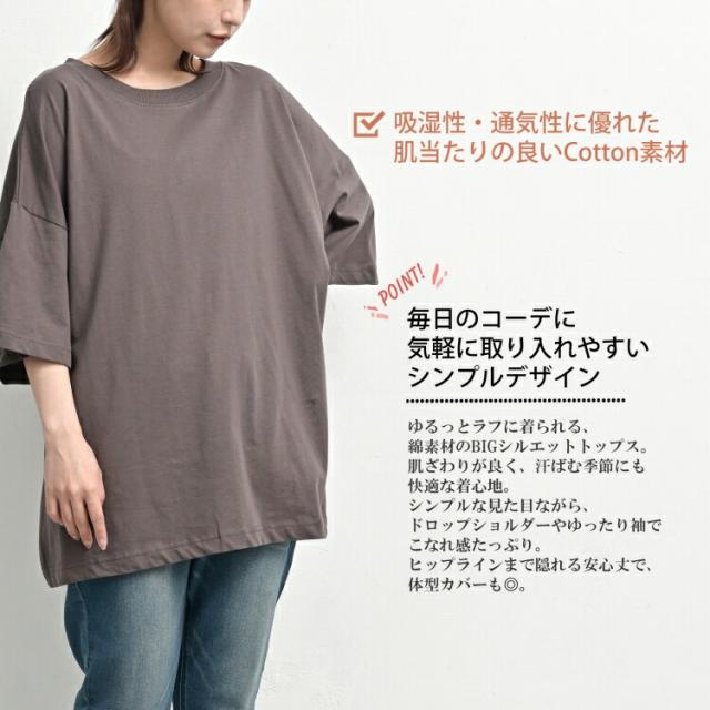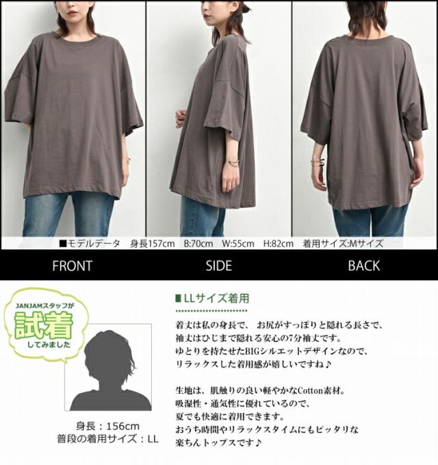 大きいサイズ レディース BIGTシャツ メール便対応 7分袖 ルーズシルエット 無地 カットソー トップス M/LL/3L/4L/5L ゆったりサイズ ぽっちゃり女子 プラスサイズ