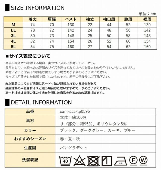 5L:着丈84 肩幅75 バスト160 袖丈27 袖口周54 脇周62 裾周160