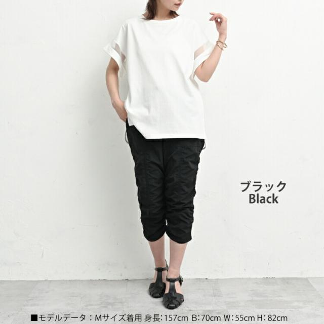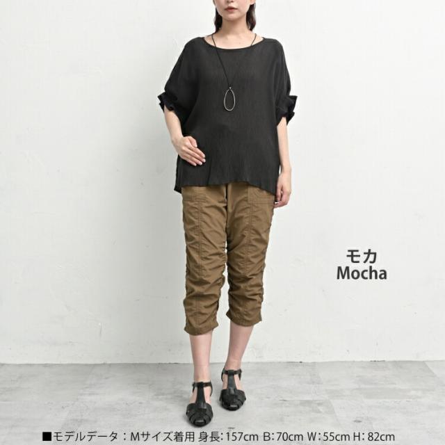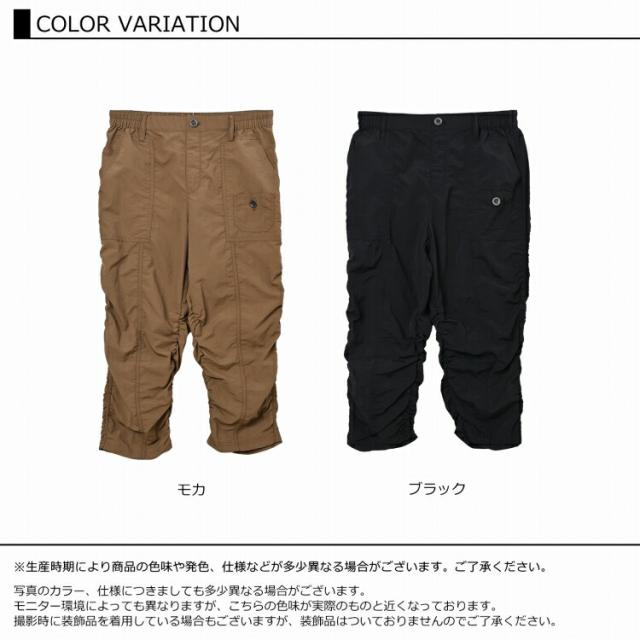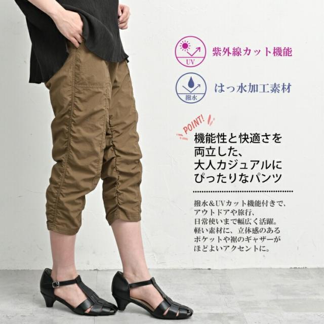 大きいサイズ レディース 裾くしゅパンツ メール便対応 アンクル丈 ウエストゴム シャーリングパンツ 撥水 UVカット ボトムス UVSS M/LL/3L/4L/5L ゆったりサイズ ぽっちゃり女子 プラスサイズ