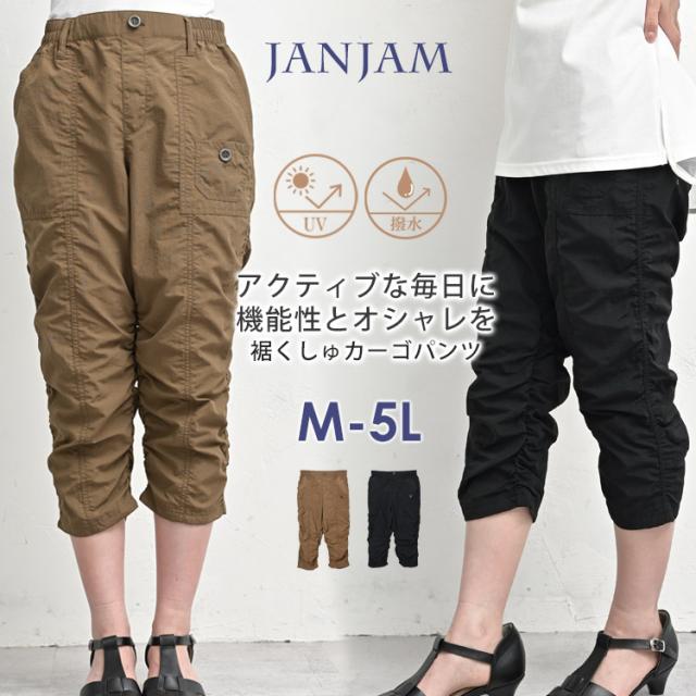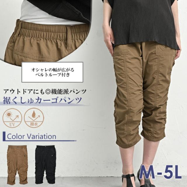 cp-ss-bt0581 【メール便対応】アウトドアにも◎機能派裾くしゅカーゴパンツ。 大きいサイズ レディース アンクル丈パンツ クロップドパンツ ナイロンパンツ シャーリングパンツ くしゅくしゅパンツ 無地 ウエストゴム アンクル丈 クロップド丈 7分丈 8分丈 股上深め 股下47cm ベルトループ ポケット 春服 夏服 春物 夏物 春パンツ 夏パンツ 長ズボン UVカット UV対策 UVSS 日焼け防止 日焼け対策 紫外線対策 撥水加工 水を弾きやすい シャカシャカ生地 薄手 大人 カジュアル ナチュラル ミリタリー おしゃれ きれいめ かわいい かっこいい 着こなし コーデ 定番 春コーデ 夏コーデ ファッション 大きめ 女性 婦人用 ミセス 30代 40代 50代 2025 夏新作 春 夏 黒 茶色 M LL 3L 4L 5L 9号 13号 15号 17号 19号 cp-ss-bt0581
