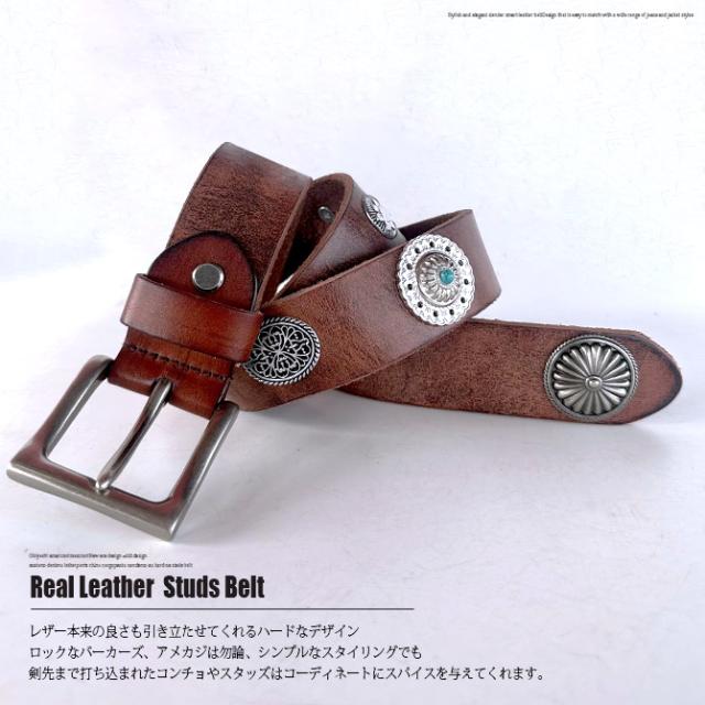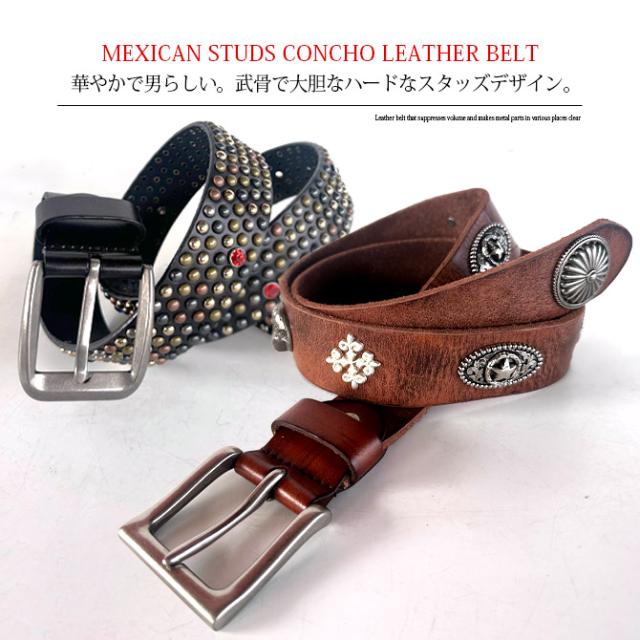 ベルト メンズ 夏新作 メキシカン スタッズベルト コンチョ 本革 レザーベルト ブラック 黒 ブラウン メンズベルト アメカジ