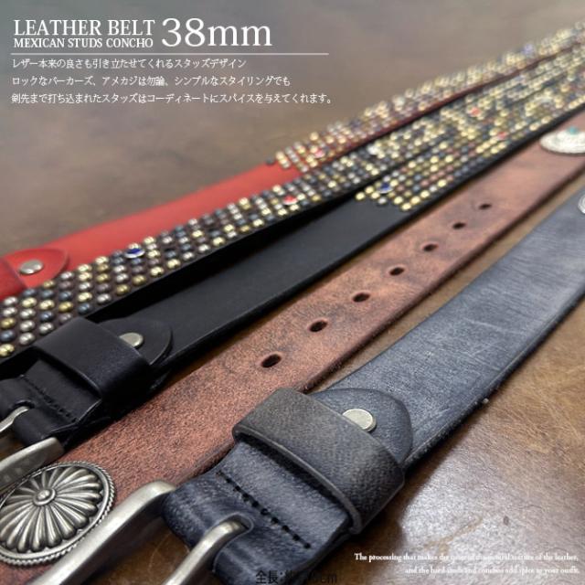 大胆なスタッズやコンチョを施したメキシカンデザイン 本革レザーベルト