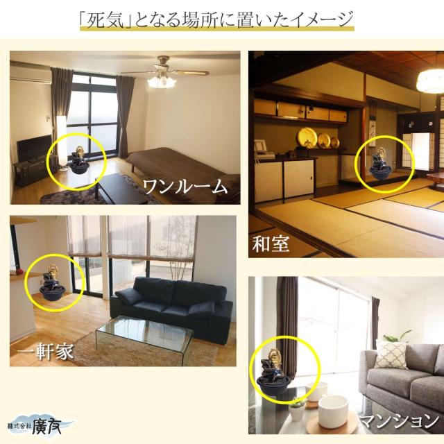 死気に動く水のものを置くと、死気が金運・財運を招く「財位」に変わると言われています。