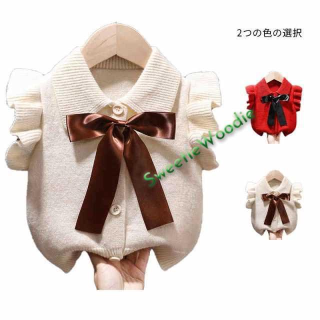 ニットベスト ニット ベスト キッズ 女の子 韓国子供服 子供服 子ども服 こども服 リボン 秋 冬 80 90 100 110 120 130 袖フリル 送料無料