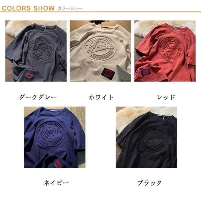 【送料無料】tシャツ カットソー 半袖 アメカジ メンズ 古着風 英字 3Dプリント 無地 シンプル レトロ トップス アメリカン おしゃれ ストリート カジュアル ワンポイント 大きいサイズ ネイビー 紺 グレー 白 黒