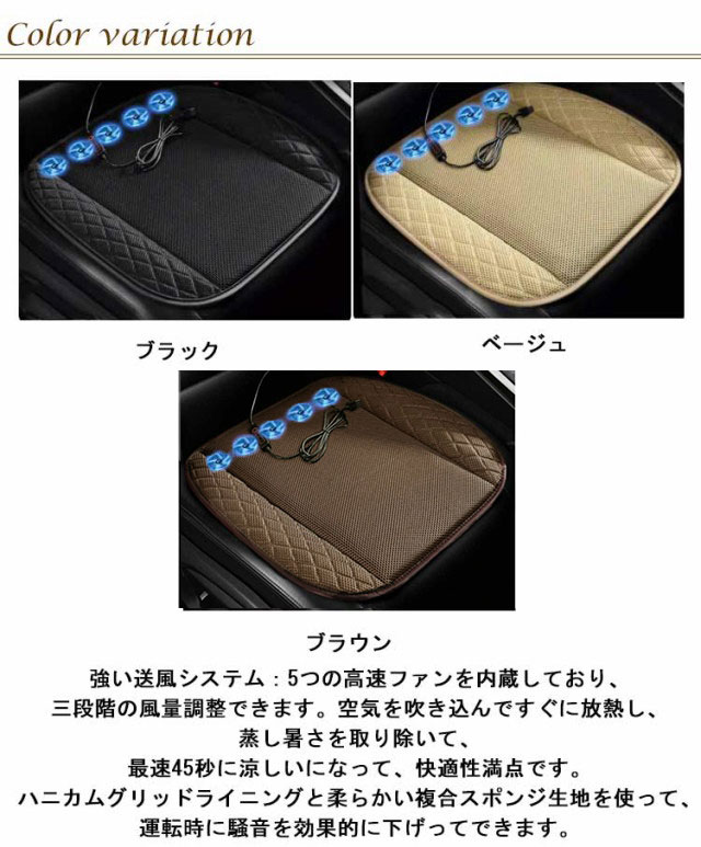 | シートクッションは冷風送風機能が搭載し、運転中の汗や蒸れを解消し、真夏の暑さ対策にぴったりです。部品独立モジュール化設計、簡単に取り外し可能で、片付け易いです。 素晴らしい通気性素材:カーシートカバーはアイスシルクとPUレザーを採用した3D立体構造のメッシュ生地なので、通気性に優れ、長時間座っても涼しい感じを持っています。裏側には滑り止め設計のシリコンが付き、長時間の運転でも滑り難い、ずれしないです。 強い送風システム:5つの高速ファンを内蔵しており、三段階の風量調整できます。空気を吹き込んですぐに放熱し、蒸し暑さを取り除いて、最速45秒に涼しいになって、快適性満点です。ハニカムグリッドライニングと柔らかい複合スポンジ生地を使って、運転時に騒音を効果的に下げってできます。 USB給電式デザイン:USBインタフェースと絶縁プラスチックシェル電源ケーブルが使って、便利とセーフティーに利用できます。車のインターフェースだけではなく、コンピューター、自宅やオフィスなど様々なシーンで利用できます。 簡単に手扱い:ワンボタン操作は簡単的に使用できますし、誰にも利用やすいです。電源がいれば、すぐに涼しいになってことをできます。ファン回転は低作業音の設計で、静かに快適な運転時間を楽しめます。 | |