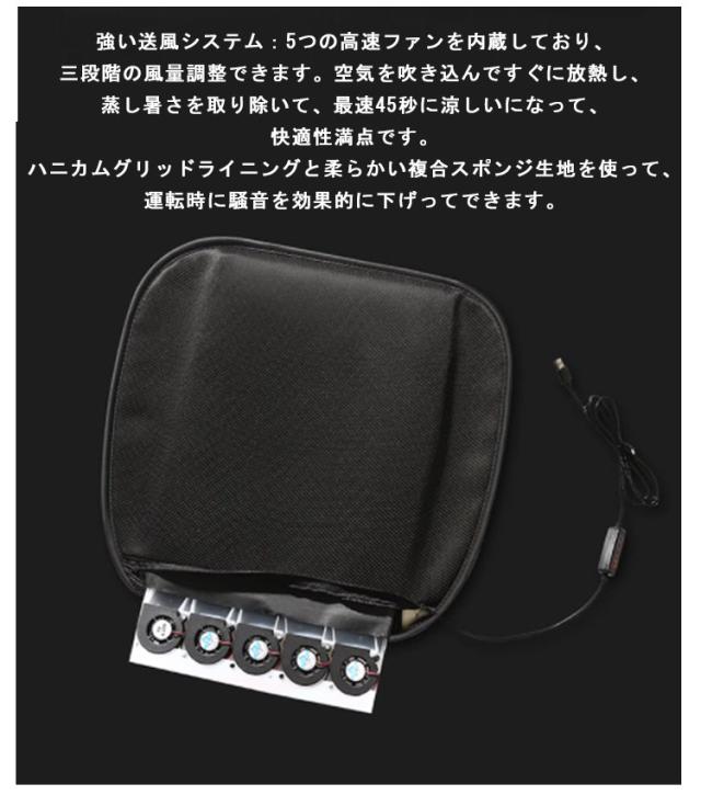 車用 カークールシートカバー シートクッション 車 シートクーラー USB 5個強力ファン 冷風送風 3段階調節 涼しい 座布団 アイスシルクカバー 高通気性 3D滑り止め 真夏対策 運転席 助手席 暑さ対策 オフィス 椅子 自宅用