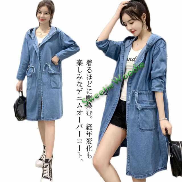 【送料無料】コート デニムコート ミドル丈 レディース デニムジャケット デニム パーカー フード付き 前開き ライトアウター 薄手 大人 春 秋 冬 カジュアル おしゃれ 大きいサイズ 20代 30代 40代 50代