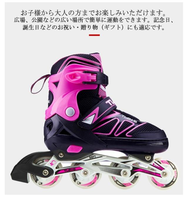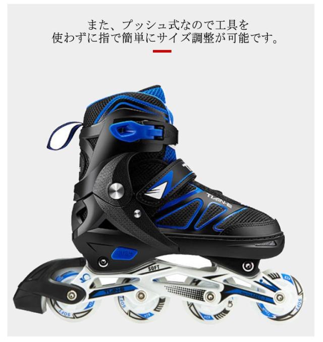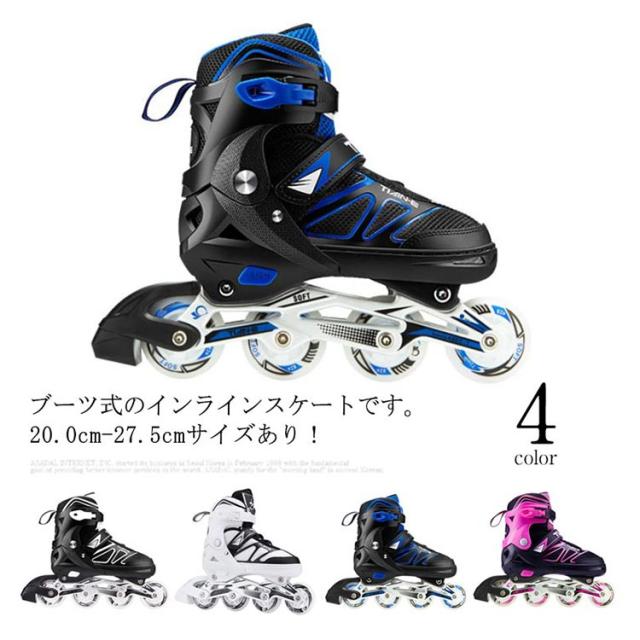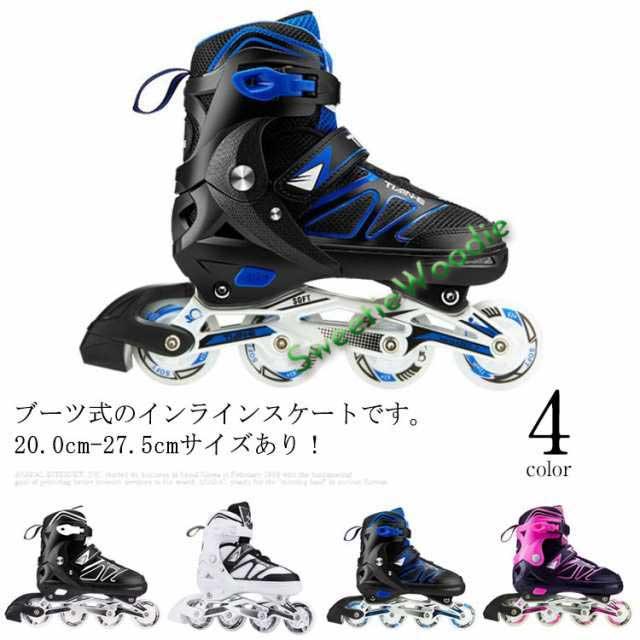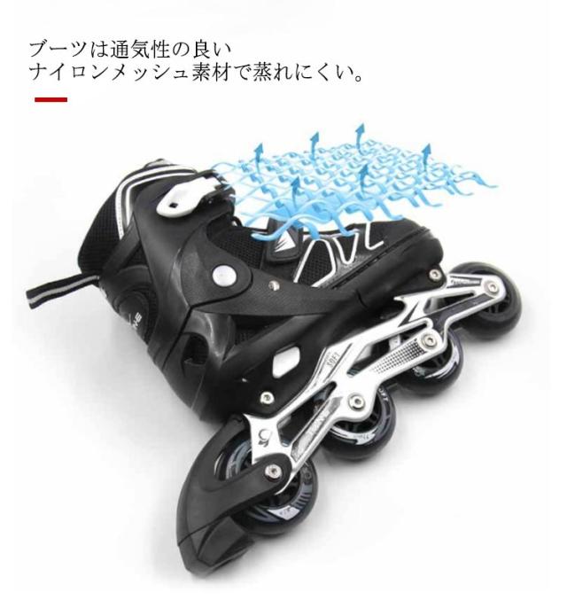 | ブーツ式のインラインスケートです。20.0cm-27.5cmサイズあり! ブーツ式だから足にピッタリとフィットして滑りやすくトラックが固定タイプなので初めての方でも乗りやすいローラースケートです。 軽量でアルミフレーム採用の耐久性のあるインラインスケート。 ブーツは通気性の良いナイロンメッシュ素材で蒸れにくい。 サイズ調整可能で厚みのあるクッションは痛い靴擦れや衝撃から足を保護します。 また、プッシュ式なので工具を使わずに指で簡単にサイズ調整が可能です。 お子様から大人の方までお楽しみいただけます。広場、公園などの広い場所で簡単に運動をできます。記念日、誕生日などのお祝い・贈り物(ギフト)にも適応です。 | |