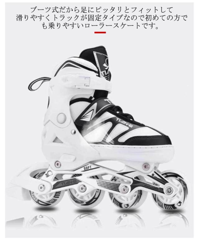 インラインスケート 大人 四輪 1列 収納バッグ付き サイズ調整可能 ローラースケート スポーツ用品 成人 男性 女性 男女兼用 高校生 アウトドア スポーツ 運動 初心者 経験者 おしゃれ ブラック 黒 ホワイト 白