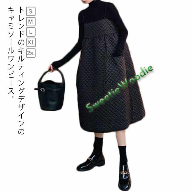 キルティング キャミソールワンピース 秋冬 ワンピース 秋 冬 カジュアル かわいい サロペット ジャンパースカート ロング丈 キャミワンピ きれいめ 大人 可愛い カジュアル ガーリー S M L XL 2XL