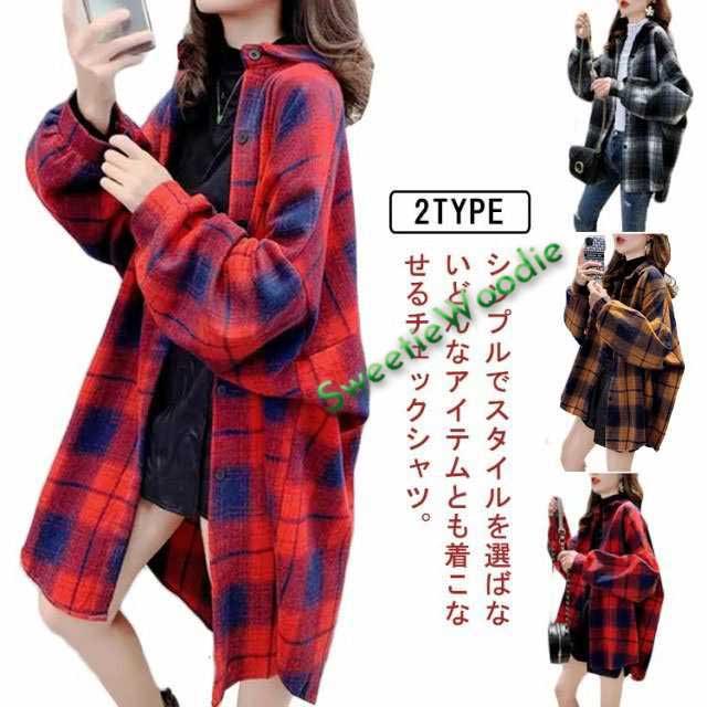 送料無料 チェックシャツ ロング チェックコート レディース コート チェック ネルシャツ ロング丈 チュニック丈 ドロップショルダー 長袖 シャツコート ジャケット アウター 羽織り ロングシャツ 長袖シャツ 大きいサイズ ゆったり