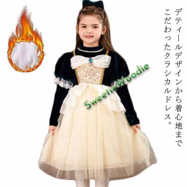 キッズ ドレス ワンピース 子供服 裏起毛 冬 女の子 ベロア お姫様ドレス プリンセスドレス チュール付き 結婚式 ピアノ 発表会 お姫様 ハロウィン クリスマス お誕生日 子ども服 100 110 120 130 140cm