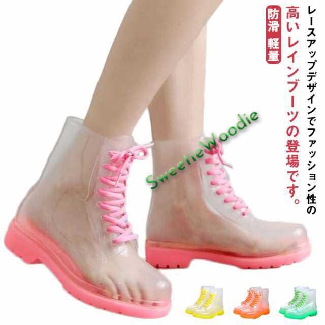 レインシューズ レースアップ レインブーツ ショート レディース 長靴 クリア フラット 大人 学生 女子 おしゃれ 防水 防滑 軽量 雨靴 通勤 通学 梅雨 台風 雨用 透明 配色 無地 シンプル 可愛い