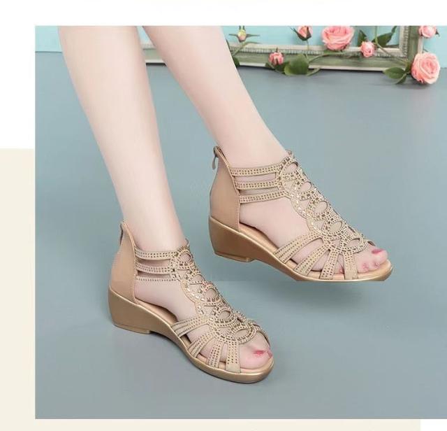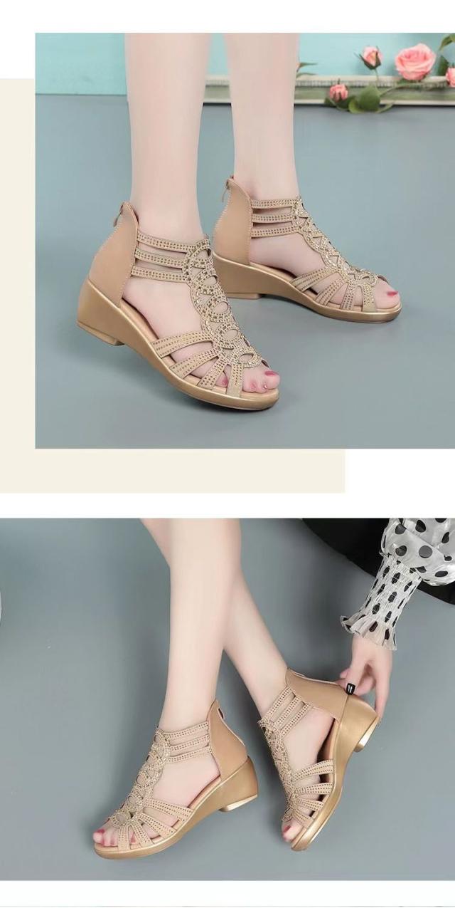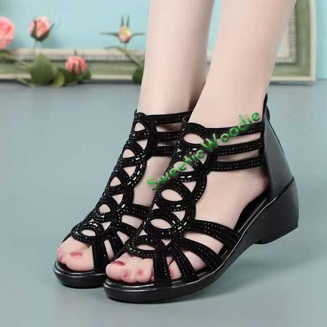 ブーツサンダル オープントゥ レディース ウェッジソール ショートブーツ サンダル グラディエーター 歩きやすい ローヒール キラキラ