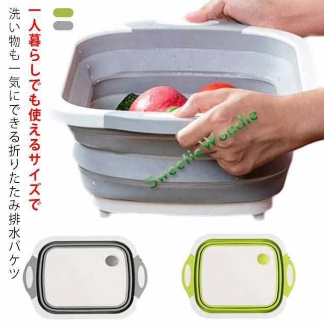 | 一人暮らしでも使えるサイズで洗い物も一気にできる折りたたみ排水バケツ シリコンとPPで出来ているので薄くて軽い!ラクラクお手入れで衛生的! 洗い物、野菜・果物を洗うときにとても楽な洗い桶になります 排水口付きで水切りや後片付けも楽々です 中の水を捨てるときもワンタッチでできるのでとても楽! まな板としてだけでなく、洗い桶も一緒になったアイテム キャンプやアウトドアでの食材の調理や、飲み物を冷やしたり、様々なシーンで活躍すること間違いなし! | |
