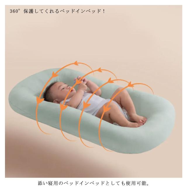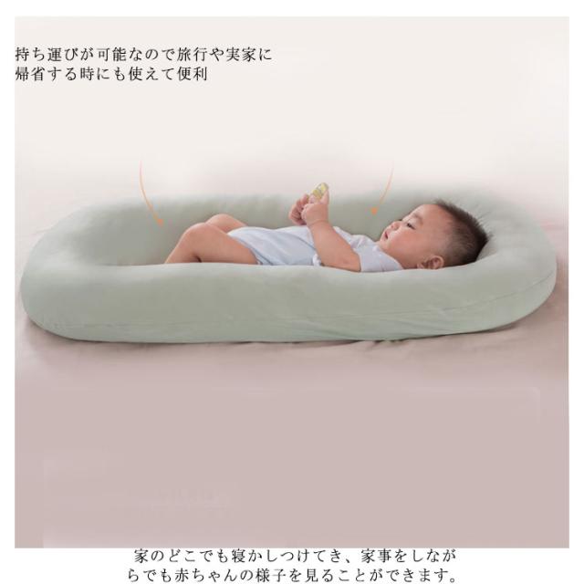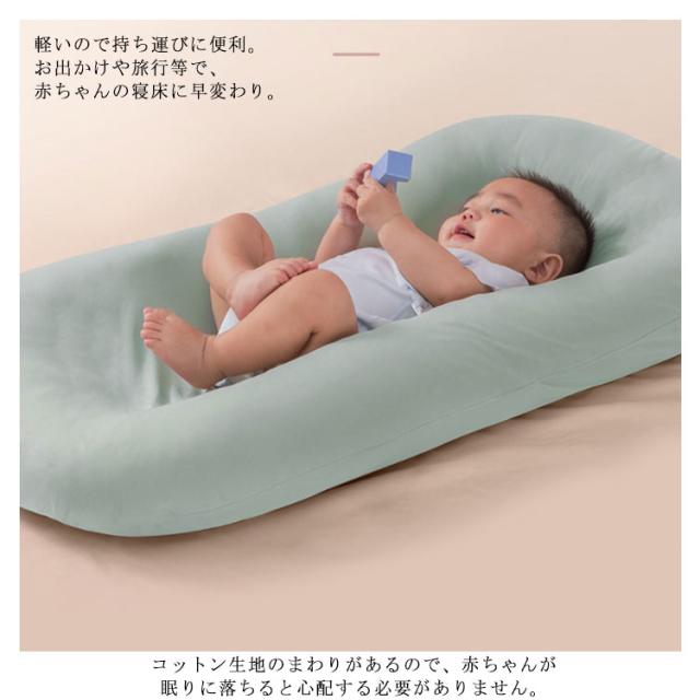 | 持ち運び便利・取り出し可能・丸洗える! クッションのようなベビーベッド! 人気のピンク ブルー グリーンが登場。 コンパクトなサイズだから里帰りや旅行、お出かけの時などの移動・持ち運びがらくらく。 添い寝用のベッドインベッドとしても使用可能。 赤ちゃんの寝かしつけもスムーズに。腹ばいの練習にもぴったりです。 取り出し洗濯できるから清潔にお使いいただけます。 360°保護してくれるベッドインベッド! コットン生地のまわりがあるので、赤ちゃんが眠りに落ちると心配する必要がありません。 持ち運びが可能なので旅行や実家に帰省する時にも使えて便利 家のどこでも寝かしつけてき、家事をしながらでも赤ちゃんの様子を見ることができます。 軽いので持ち運びに便利。お出かけや旅行等で、赤ちゃんの寝床に早変わり。 | |