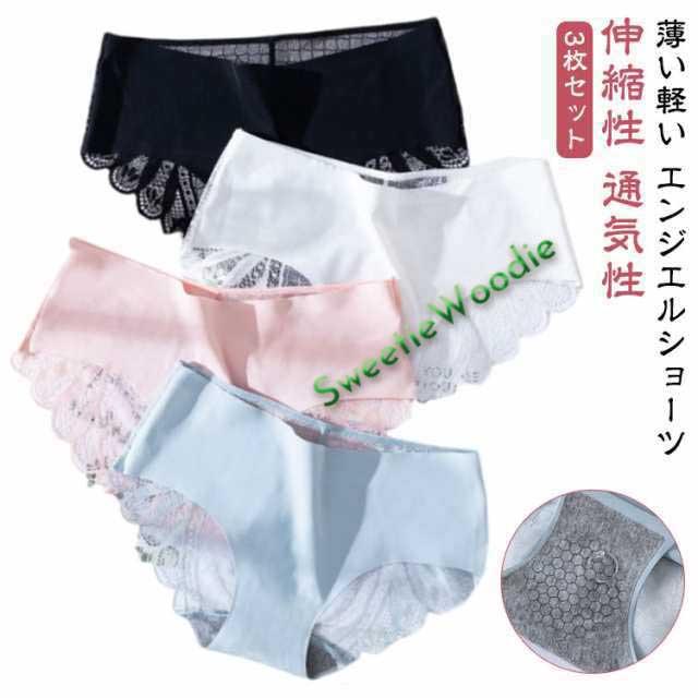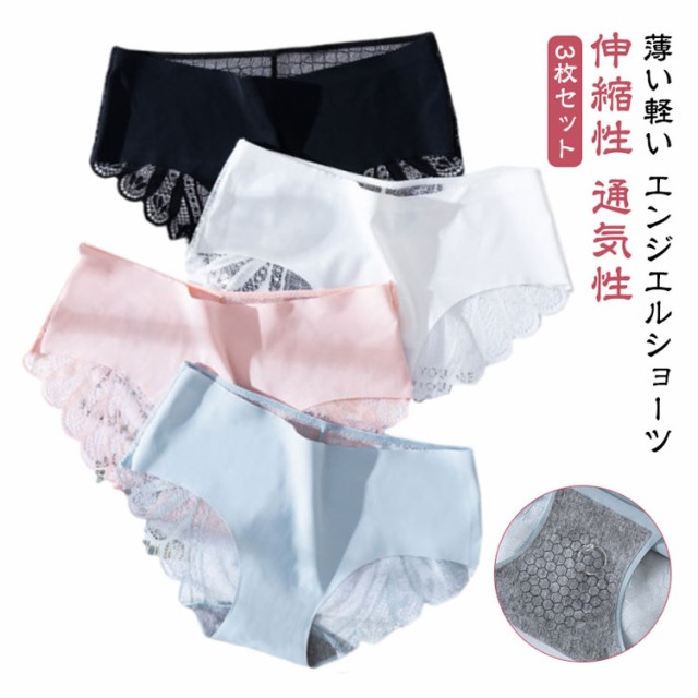 シームレス ショーツ 3枚セット シームレスショーツ 薄い軽い 快適 ランジェリー 伸縮性 ストレッチ 6color エンジェルショーツ 締め付けない 通気性 サラサラ バックレース レースデザイン レディース 下着 インナー ショーツ 上品 無地
