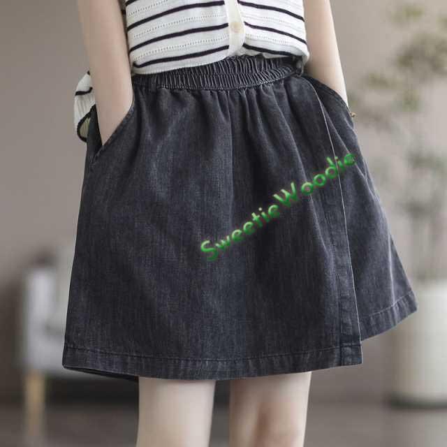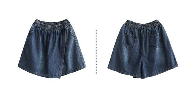 送料無料 巻きスカート風 デニム キュロットパンツ ラップスカート ショートパンツ パンツ 短パン スカーチョ スカンツ フレアパンツ 無地 ハイウエスト スタイリッシュ ボトムス