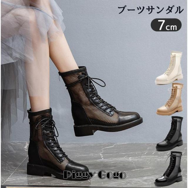 ブーツサンダル レディース サマーブーツ シューズ ヒール7cm ブーツ インヒール PU メッシュ 厚底 靴 サンダル シューズ レディース靴 太ヒール 走れる