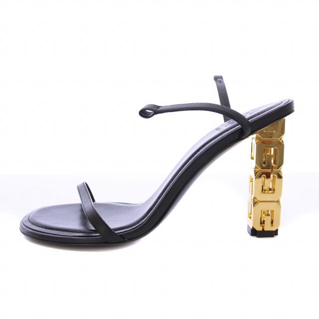 【中古】ジバンシィ GIVENCHY サンダル ハイヒール Gキューブ ストラップ レザー 37.5 黒 /BM レディース