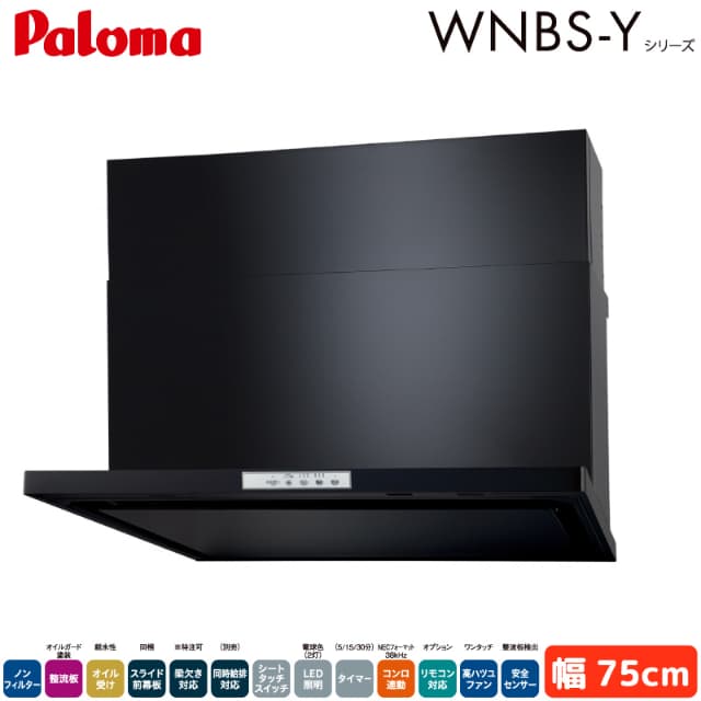 パロマ レンジフード 幅75cm WNBSK758YDXMKL/R WNBS-Yタイプ シロッコファン 右排気 左排気 ノンフィルター ブラック 受注生産 Paloma