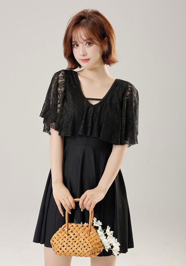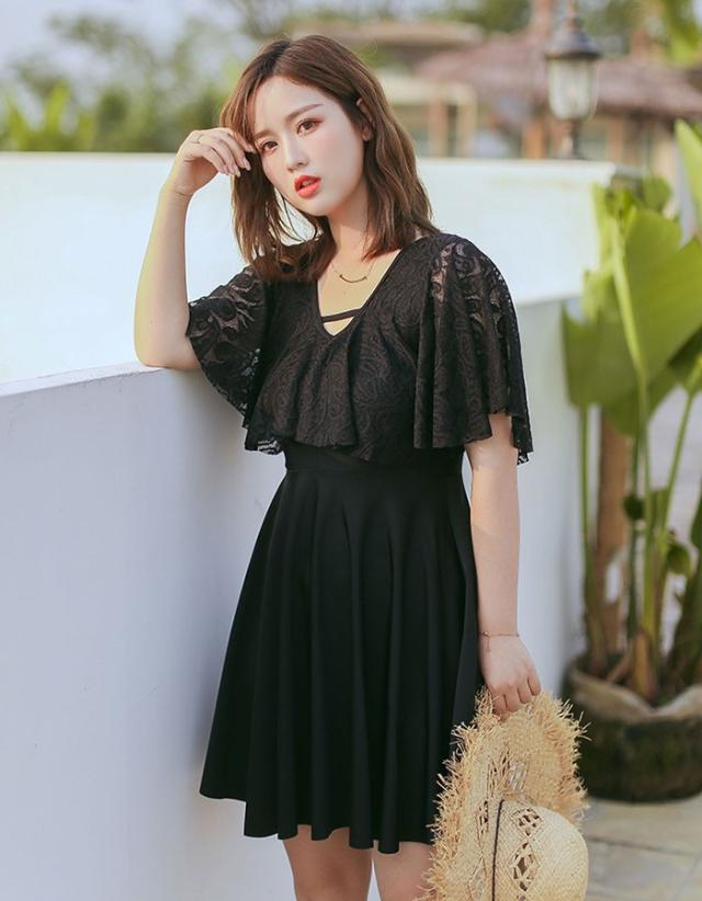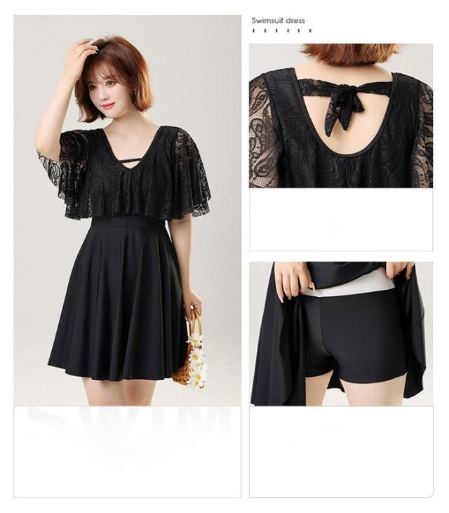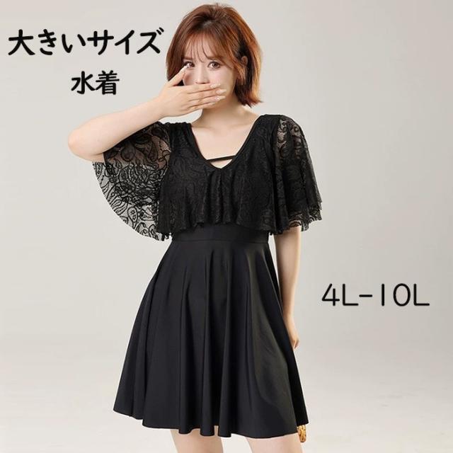 大きいサイズ水着 ワンピース水着 服みたいな レディース 半袖 体型カバー 一体型パンツ付き ワイヤーなし パッド付 水着 日焼け防止 着痩せ シンプル セクシー 写真映え 撮影用 海 夏 サマー 韓国風 女性用 大人 大きいサイズ 4L-10L ブラック mg007m6m6x7 mg007m6