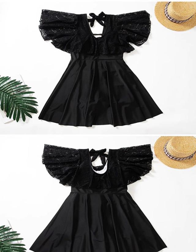大きいサイズ水着 ワンピース水着 服みたいな レディース 半袖 体型カバー 一体型パンツ付き ワイヤーなし パッド付 水着 日焼け防止 着痩せ シンプル セクシー 写真映え 撮影用 海 夏 サマー 韓国風 女性用 大人 大きいサイズ 4L-10L ブラック