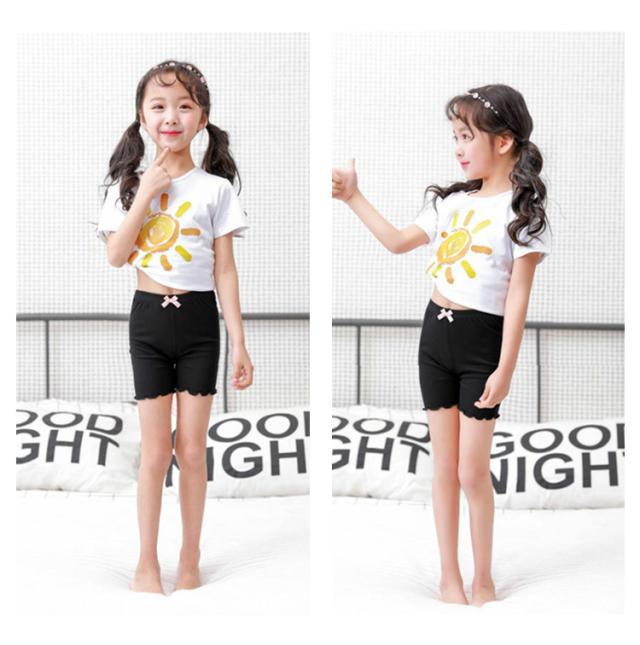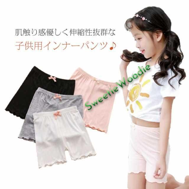 送料無料 インナーパンツ ペチパンツ 薄手 ペチコートパンツ ショートパンツ レギンス 2分丈 子供用 見せパン 安全パンツ 安全ショーツ 裾メロウフリル シンプル 下着 肌着 女の子 女児 キッズ 子供服 子ども服 こども服 高学年 中学生 ジュニア 100-170cm