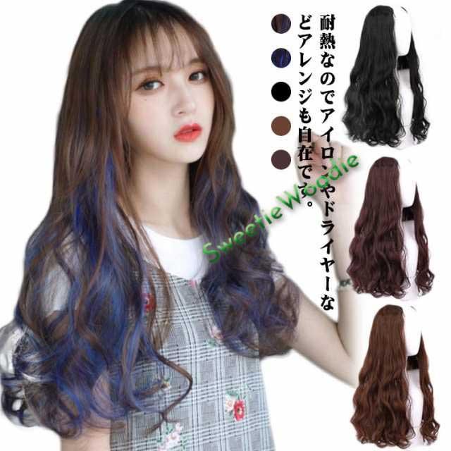 襟足ウィッグ グラデーション エクステ カール つけ毛 ワンタッチ ロング 自然 部分 カラーエクステ 襟足エクステ 襟足 部分ウィッグ エクステンション 黒 ブルー ウイッグ レディース 送料無料