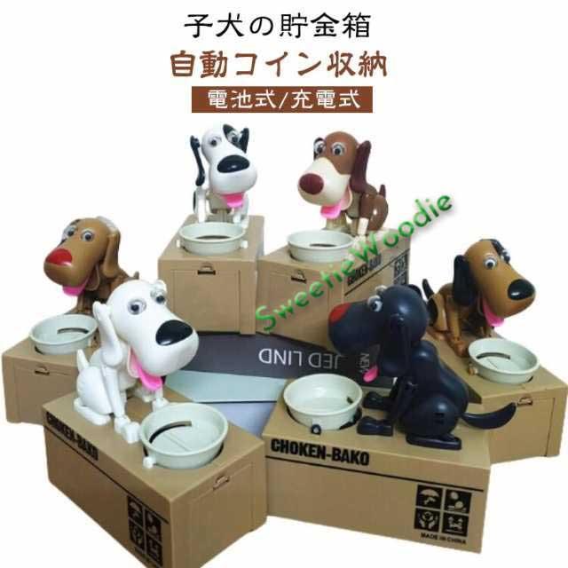 食べる コインバンク 犬 かわいい 自動 自動コイン収納 食いしん坊 子犬の貯金箱 充電式 電池式 おしゃれ 面白い リトルドッグバギーバンク 充電式 大容量 コインを食べる貯金箱 漫画犬の電気貯金箱 クリエイティブ貯金箱