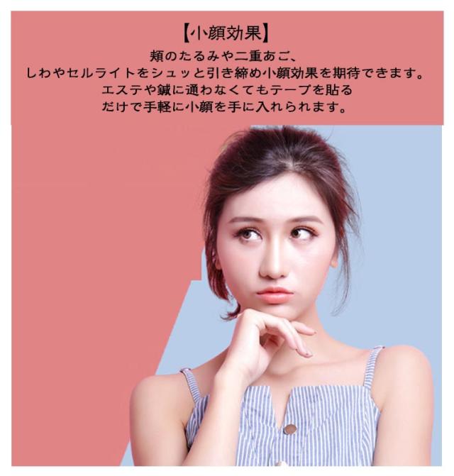 | 【簡単リフトアップ】 貼るだけでフェイスラインをすっきりシャープに! 強力な極薄テープで簡単にリフトアップでき、気になるフェイスラインを効果的に持ち上げます。 【小顔効果】 頬のたるみや二重あご、しわやセルライトをシュッと引き締め小顔効果を期待できます。 エステや鍼に通わなくてもテープを貼るだけで手軽に小顔を手に入れられます。 【目立ちにくい】 透明極薄のテープなので目立ちにくくテープの上からメイクもOK! 皮膚の動きにフィットするので違和感が少なく自然なつけ心地です。 | |