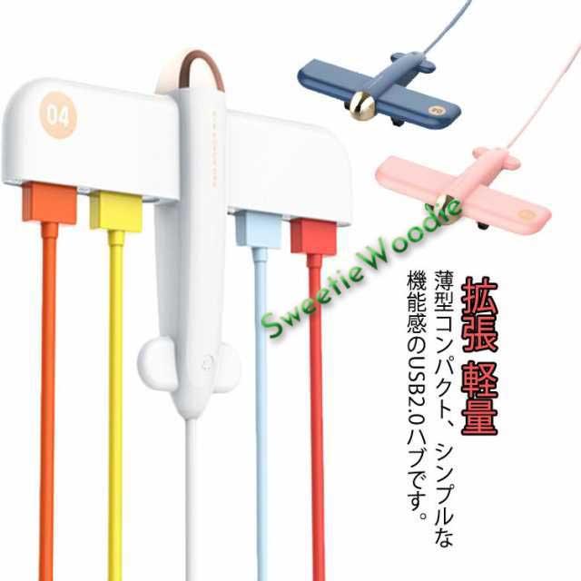 USBター USB-Aポート USB中継 ブルー ハブ USBハブ usbポート 4ポート 4口 充電 高速データ転送 拡張 USBハブ 軽量 コンパクト スリム かわいい 増設 空飛ぶ 変換アダプタ マウス キーボード 接続 面白い ユニーク ホワイト 飛行機