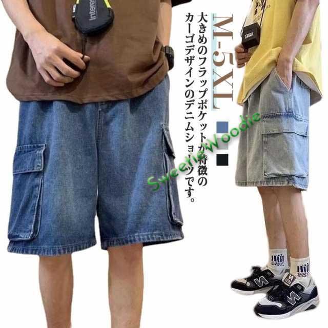 ワイドパンツ カーゴショーツ デニムパンツ カーゴパンツ ショートパンツ 半ズボン ジーンズ ハーフパンツ スケーター メンズ ストリート 短パン パンツ おしゃれ ボトムス 男性 太い 太め ルーズ ゆったり