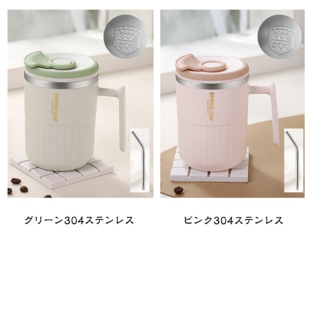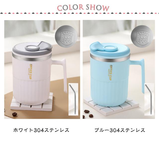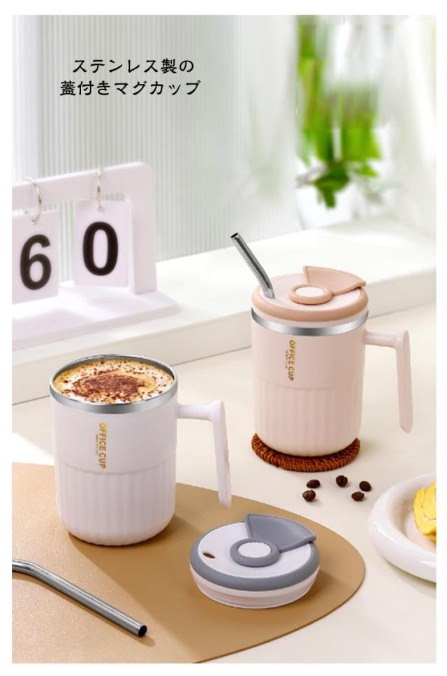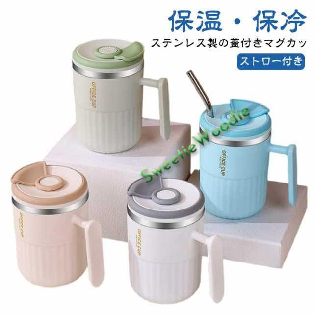 ストロー付き 保温 コップ マグカップ フタ付き 食器 蓋付き 保冷 マグ おしゃれ 真空断熱 450mL マグカップ ステンレス オフィス コーヒー マグカップ 雑貨 誕生日 キッチン フタ付 かわいい アウトドア キャンプ 新生活