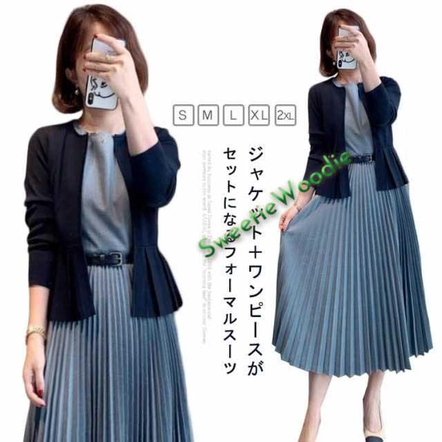 ママスーツ ワンピーススーツ レディース フォーマルスーツ スーツ 2点セット ジャケット 母親 セットアップ 上品 通勤 入園式 結婚式 母親 入学式 卒業式 女性 大きいサイズ 七五三 プリーツワンピース