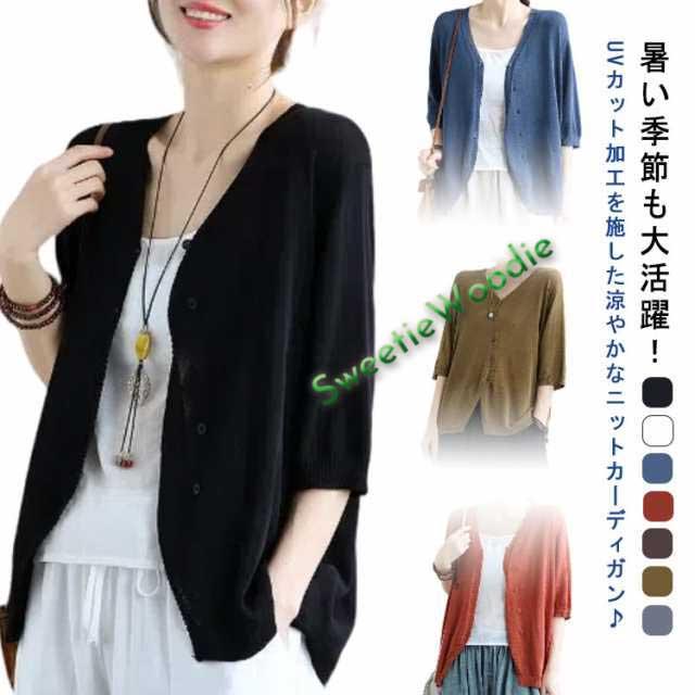 春 七分袖 カーディガン Vネック 夏ニット ミドル丈 夏 薄手 レディース サマーカーディガン UV対策 ニット 羽織 トップス 夏ニット サマーニット 前開き ライトアウター 紫外線対策 オフィス 冷房対策 日焼け防止 母の日 半袖