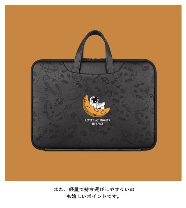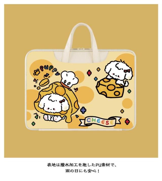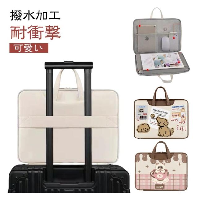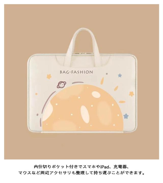 | 【耐衝撃】【可愛い】【撥水加工】 内側はクッション素材入りで、パソコンをしっかりと保護できます。 表地は撥水加工を施したPU素材で、雨の日にも安心! 内仕切りポケット付きでスマホやiPad、充電器、マウスなど周辺アクセサリも整理して持ち運ぶことができます。 また、軽量で持ち運びしやすくいのも嬉しいポイントです。 | |