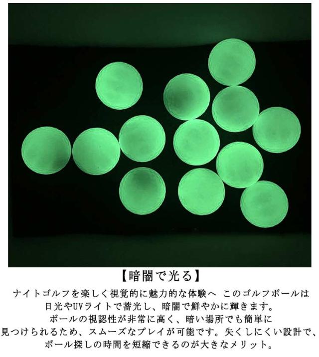 | 4個セット!上級者から初心者まで満足できる、性能と実用性を兼ね備えた高品質な蛍光ゴルフボール 輝くゴルフボールで特別な思い出をプレゼント 暗闇で美しく輝くゴルフボール 【本物のゴルフボールと同等の性能】正確なショットを可能に 重さとサイズが正規規格に基づいた設計で、通常のゴルフボールと同様のパフォーマンスを発揮。独自の凹面表面構造が空気抵抗を減少させ、より長い飛距離と正確なショットを可能にします。暗闇でも昼間と同じレベルのプレイを楽しめるため、ナイトゴルフや早朝の練習に最適。 【プレミアム素材】耐久性と弾力性を両立した安心のゴム製 屋内外を問わず、練習用としても最適で、初心者からプロまで満足いただける品質です。 【暗闇で光る】ナイトゴルフを楽しく視覚的に魅力的な体験へ このゴルフボールは日光やUVライトで蓄光し、暗闇で鮮やかに輝きます。ボールの視認性が非常に高く、暗い場所でも簡単に見つけられるため、スムーズなプレイが可能です。失くしにくい設計で、ボール探しの時間を短縮できるのが大きなメリット。 【長時間の輝き】暗闇でも長く楽しめる このゴルフボールは効率的な蓄光技術を採用し、プレイ前に明るい場所や日光の下で充電するだけで、暗闇でも長時間にわたり輝きを保ちます。 | |