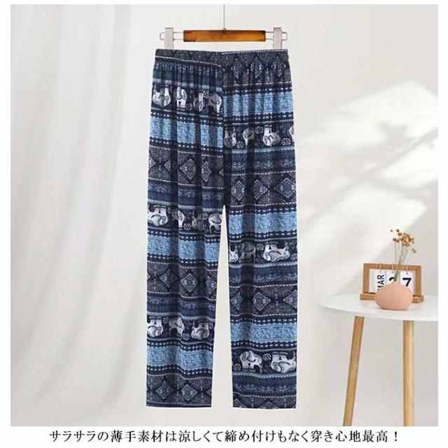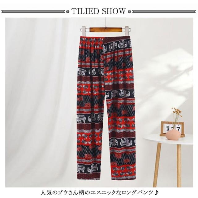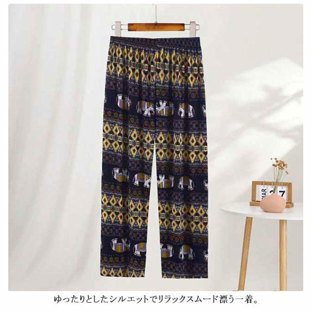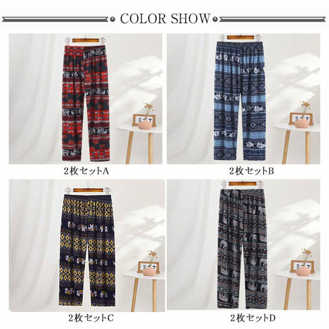 2枚セット タイパンツ 象さん柄 ゾウ柄 ロング丈 エスニックパンツ アジアン ワイドパンツ イージーパンツ メンズ レディース ユニセックス 男女兼用 リラックス ウエストゴム ゾウ ぞう 象 部屋着 ルームウェア パジャマ 旅行