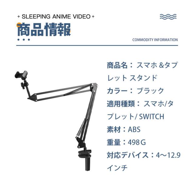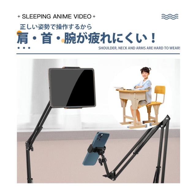 寝たまま タブレットアーム アームスタンド スマホアーム タブレット スマホ スタンド ipad 折り畳み 卓上 ベッド 横/縱き/仰向け ホルダー 4.7〜12.9インチ対応 タブレットPCスタンド iphone 360° 折りたたみ式 床置き 在宅ワーク 在宅勤務