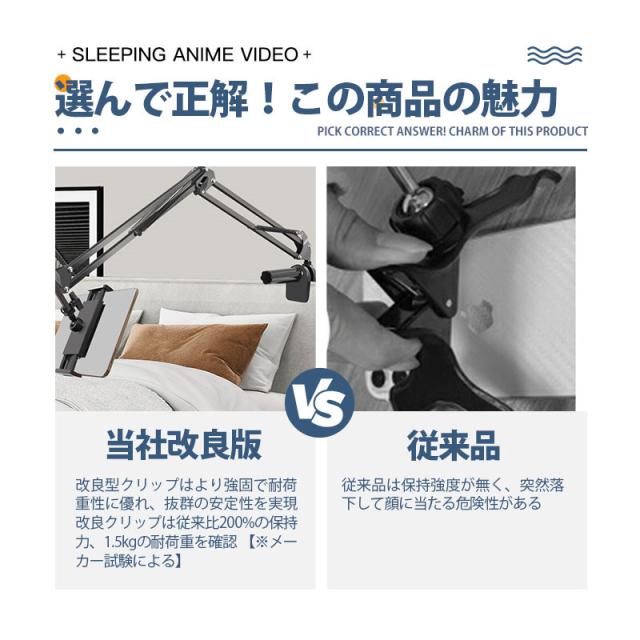 【水曜日まで!10%クーポン配布中】 タブレットスタンド 寝ながら スマホスタンド タブレットアーム 携帯スタンド iPadスタンド アーム 横/縱き ベッド用 ホルダ